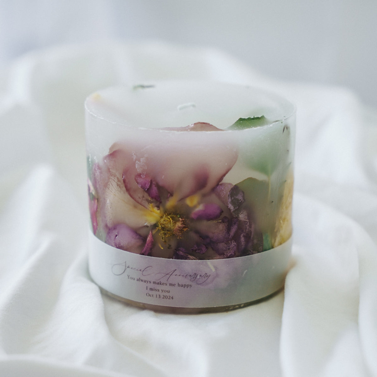 ♦︎火を灯すと中心部のみ溶けて周りのお花部分は残して凹む